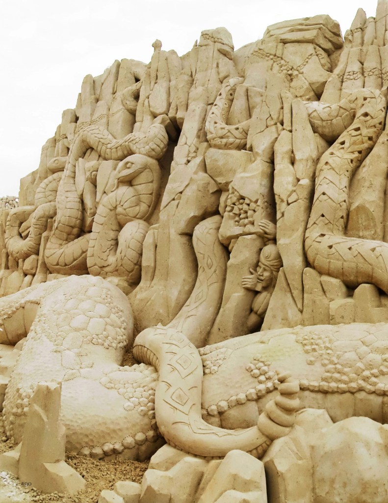 Well for this event, a lot of the pieces were done by teams and so it’s hard to really pinpoint how long a single sculpture would take. The advantage of sculpting sand is the speed that you can create something is very quick. The material is removed quite easily. Of course, you have also the disadvantage of gravity and susceptibility to weather events. This is why we could make this huge, sculpted theme park in such a short period of time.